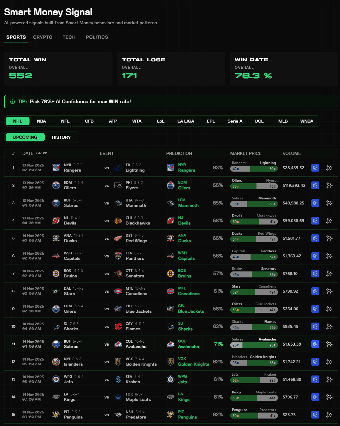 Your edge in Prediction Markets: AI automation, profit sharing, signals, and smart money analytics.